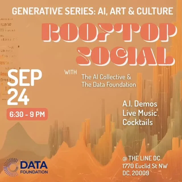Live Events discussing topics at the intersection of AI, Art, and Culture// Washington, D.C. Ai, Art & Culture Rooftop Social Sept 24th, 2025 - 6-9PM The LINE Hotel DC 1770 Euclid St NW Washington, D.C. 20009